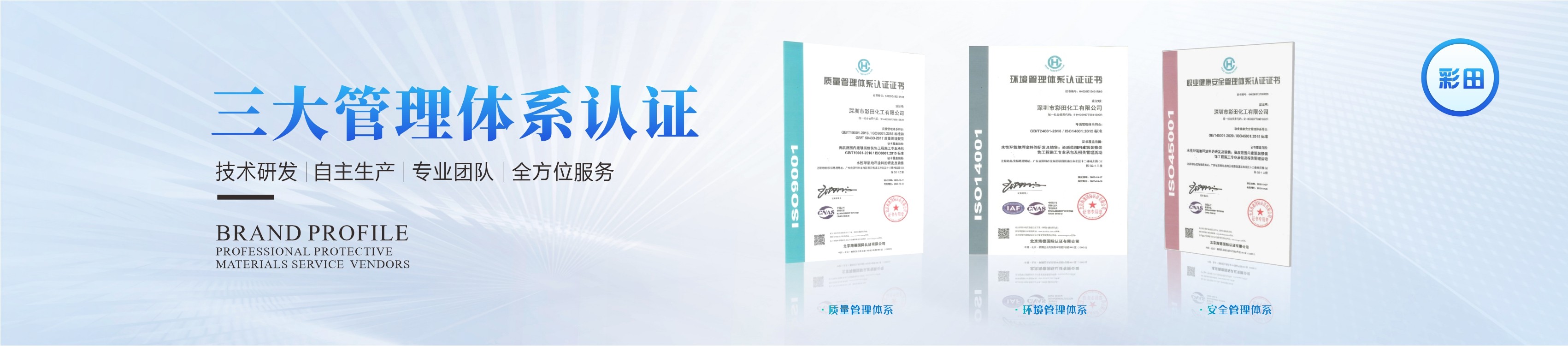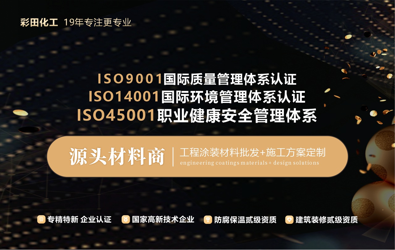 彩田化工是國家高新技術企業(yè),專精特新企業(yè),是集技術研發(fā)、生產(chǎn)、銷售、方案設計一體的防護材料源頭生產(chǎn)廠商。自2005年成立以來,一直致力于環(huán)保涂裝材料領域的多場景專業(yè)化整體方案設計,提供一站式防護方案配套服務。公司成立19年,擁有高水準服務團隊,從原料提供到應用場景落地的定制化方案設計,從工程施工到落地質量把控,全程跟進有保障。