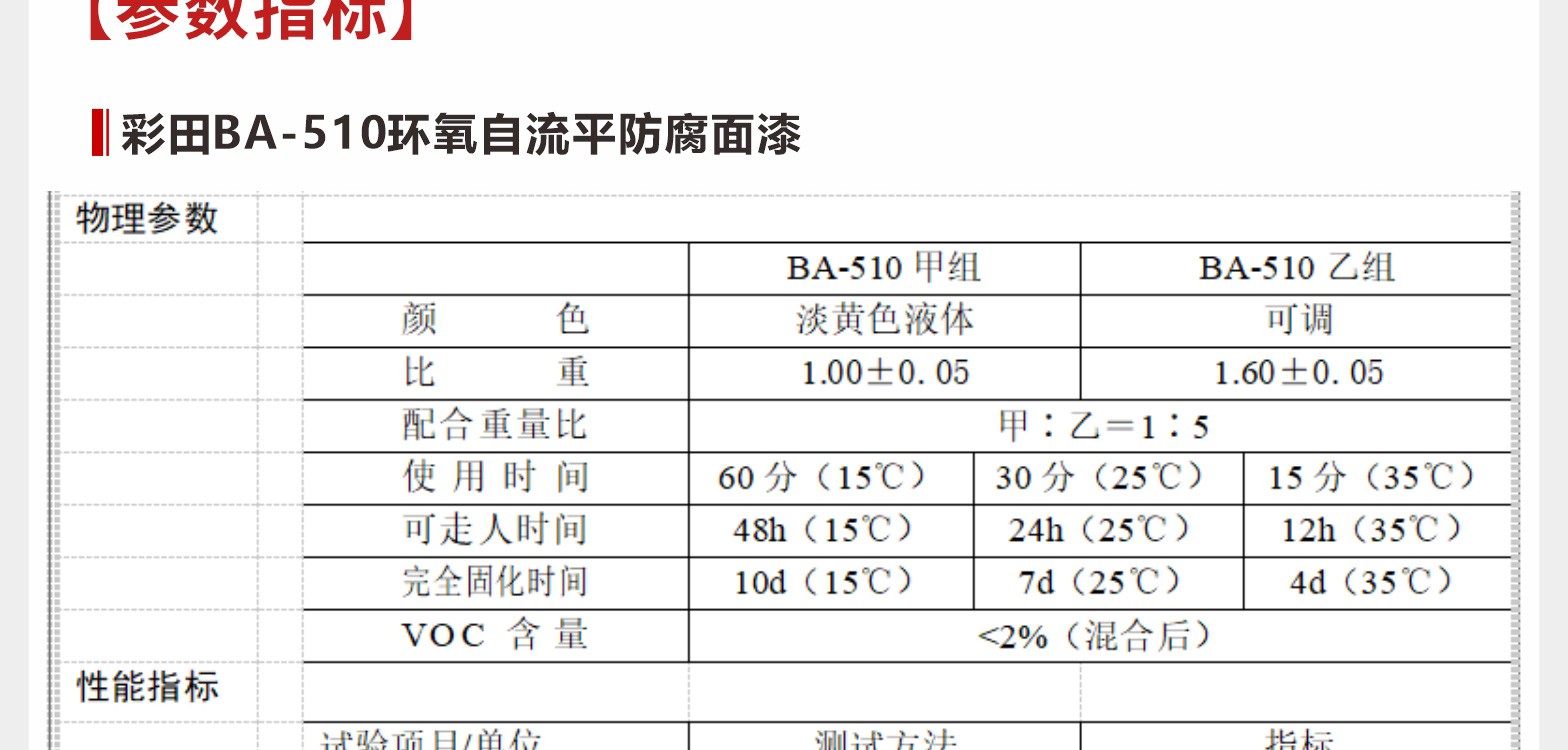 彩田BA-510環(huán)氧自流平防腐面漆