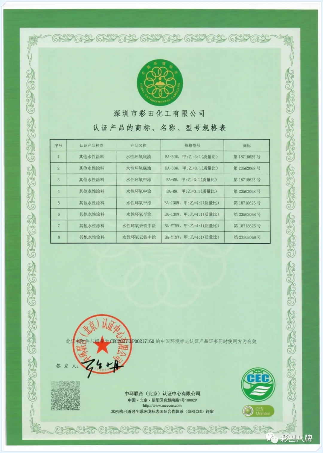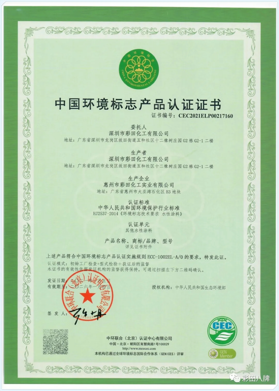 彩田一直以環(huán)??衫m(xù)持發(fā)展為己任,大力推廣水性涂料,節(jié)約大量能源,大量降低對環(huán)境的污染。目前,彩田已獲得中華人民共和國生態(tài)環(huán)境部頒發(fā)的中國環(huán)境標志產(chǎn)品認證證書(十環(huán)認證),是目前地坪行業(yè)唯一獲得此認證的企業(yè)!