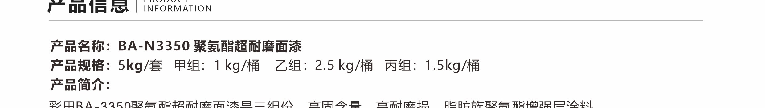 BA-N3350聚氨酯超耐磨面漆 | 高硬度 · 抗劃傷 · 耐磨耐壓